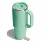 Hot drinks, handled Your favorite Travel Tumbler, now designed for hot drinks with a leak-resistant, closeable lid. A very comfortable, extremely durable handle takes it to the next level, and the smaller size can go anywhere, even fitting most cupholders.