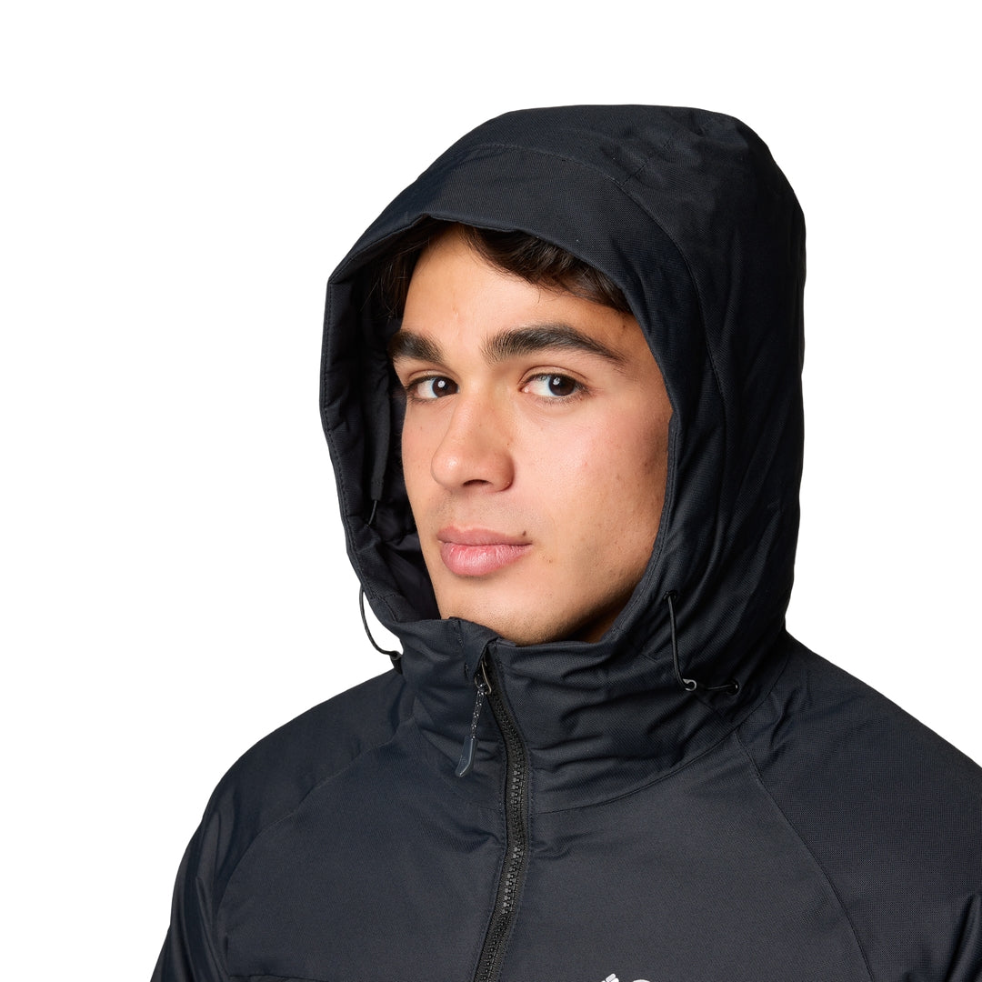 FEATURES: Omni-Tech™ critically seam sealed prevents moisture from seeping into essential areas while using waterproof-breathable fabric, so you stay dry and comfortable in the rain Omni-Heat™ Infinity lining retains body heat while remaining breathable using an expanded pattern of thermal-reflective gold dots to keep you extra warm in cold conditions HeatSeal™ keeps you warm with a no-stitch, thermal-bonded construction that seals warmth in and cold out so you can take on chilly conditions RDS certified down ensures ethical manufacturing practices 650 fill power down insulation traps more heat so you stay comfortable in cold conditions Drawcord-adjustable hood for a varied fit over the head Chin guard prevents chafing Zippered hand pockets secure valuables Adjustable cuffs and drawcord-adjustable hem secure the fit Center Back Length: 28.0 in / 71.1 cm Uses: Hiking