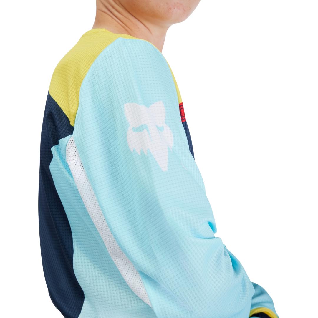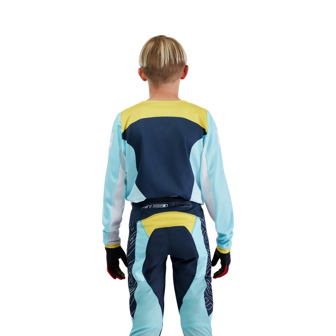 The most recognized gear in motocross, the 180 is time-tested in quality and performance. Elevated fabrics, patterns and color blocking informed by race graphics—that's Elevated Future. The Youth 180 Elevated Jersey delivers all the essential features needed for riding motocross and is the ideal gear for those rising through the ranks from beginner to seasoned veteran. The foundation of 180 Jersey is its moisture-wicking fabric and vented mesh panels designed to keep you cool, dry, and comfortable, while the drop tail ensures you keep your jersey tucked in your pants all ride long.