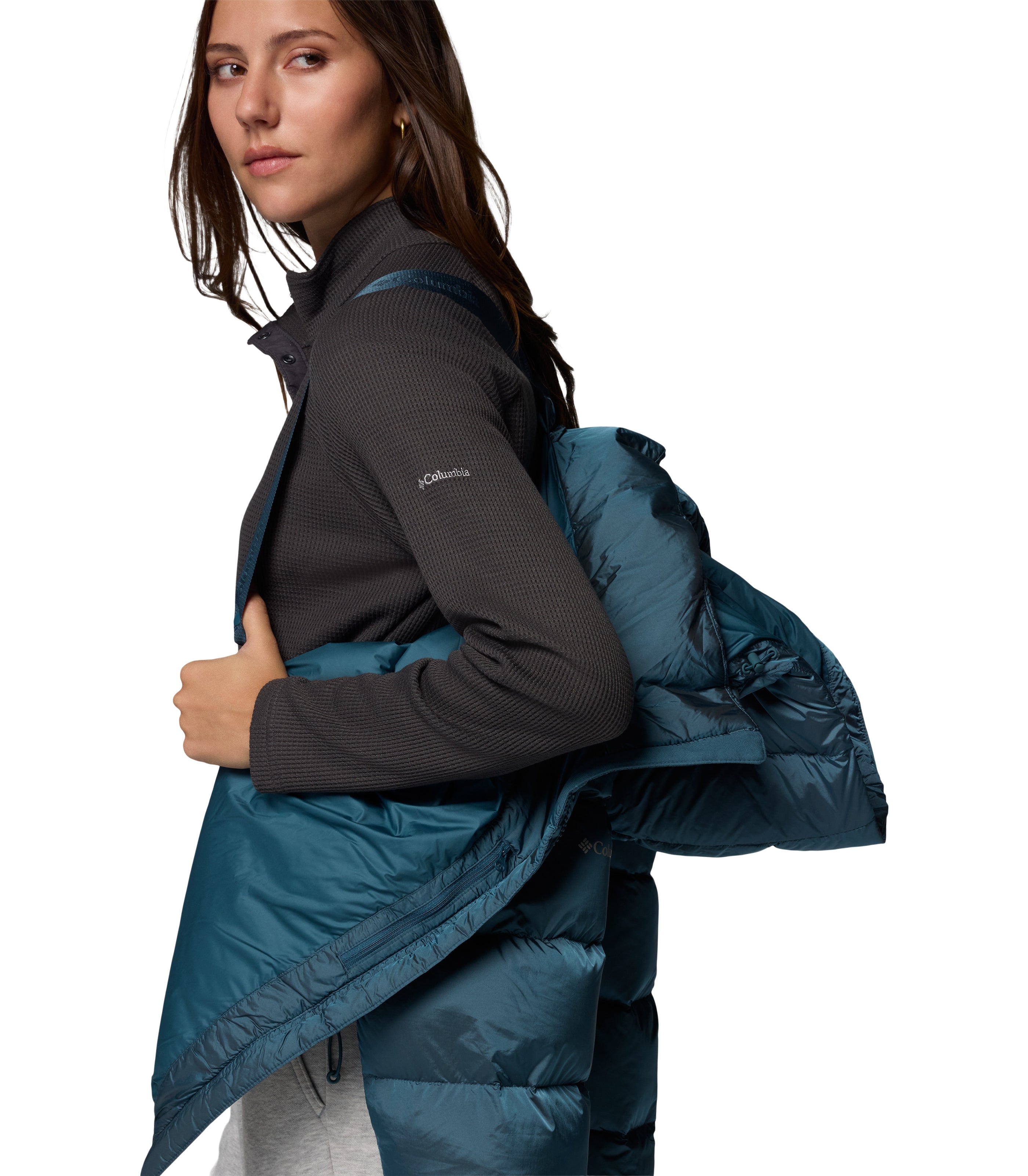 FEATURES: Omni-Shield™ repels moisture and resists stains by preventing liquids from absorbing into fast-drying yarns, so you stay clean and dry in damp, messy conditions RDS certified, 650 fill power down insulation traps more heat so you stay comfortable in cold conditions Crafted with room for layering a sweater or sweatshirt for extra warmth Removable, interior shoulder straps for versatile, hands-free carrying Zippered, fleece-lined hand pockets secure valuables Removable, drawcord-adjustable hood seals out the elements Front closure with flap cover keeps wet out Interior security pocket for valuables Elastic cuffs provide a versatile fit Drawcord-adjustable hem seals out the elements Comfort cuffs with thumbholes seal out the elements Uses: Everyday Imported