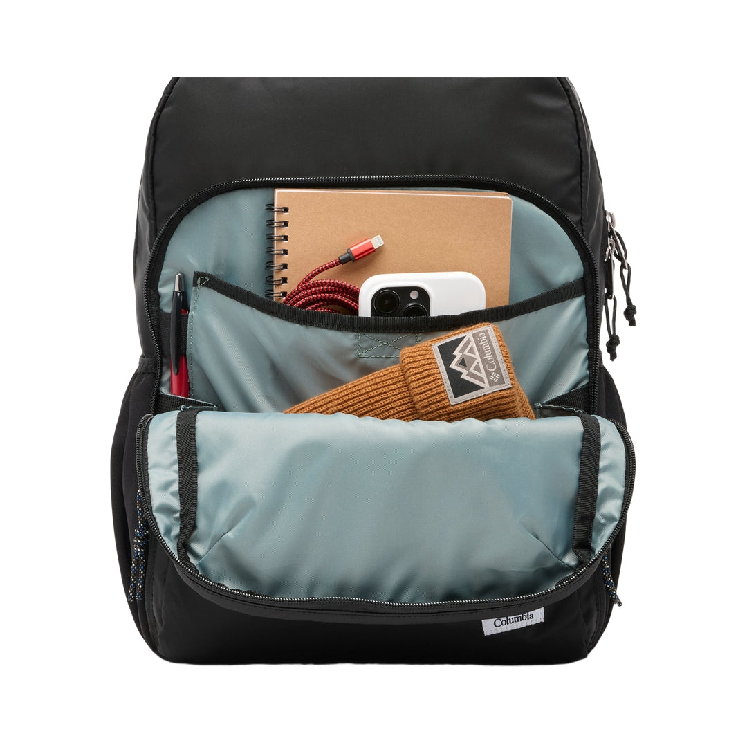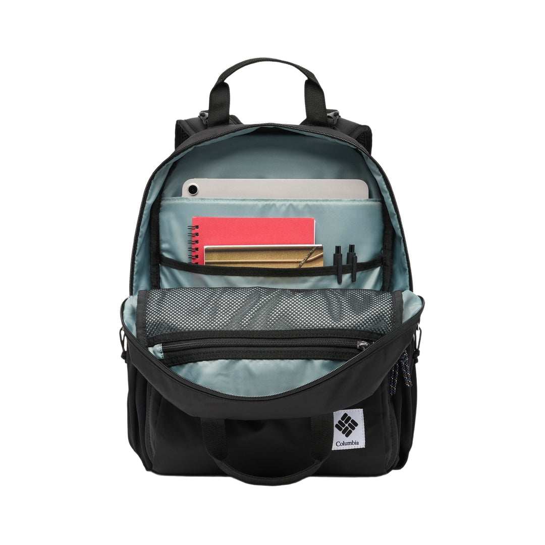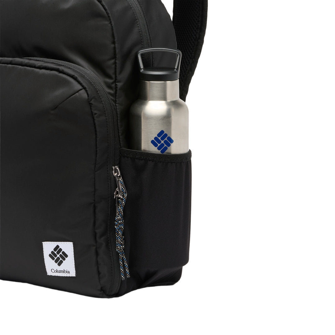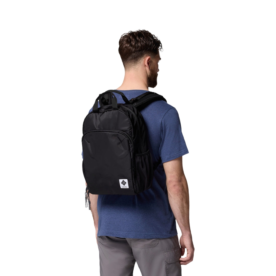 FEATURES: Omni-Shield™ repels moisture and resists stains by preventing liquids from absorbing into fast-drying yarns, so you stay clean and dry in damp, messy conditions Water-resistant zipper keeps light moisture out Padded laptop compartment Front pocket for easy organization Two stretchable side water bottle pockets Removable sternum strap for support Fits a 13" / 33 cm laptop Capacity: 1,098 cu. in. / 18L Dimensions: 15.3" x 10.6" x 4.7" / 39cm x 27cm x 12cm Weight: 1.3 lb 21.3 oz / .60 kg 605g Uses: Everyday