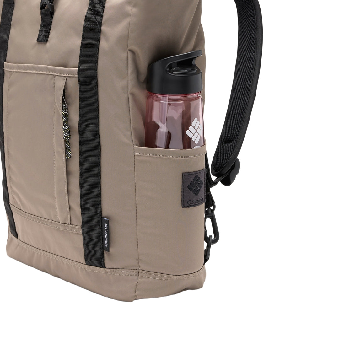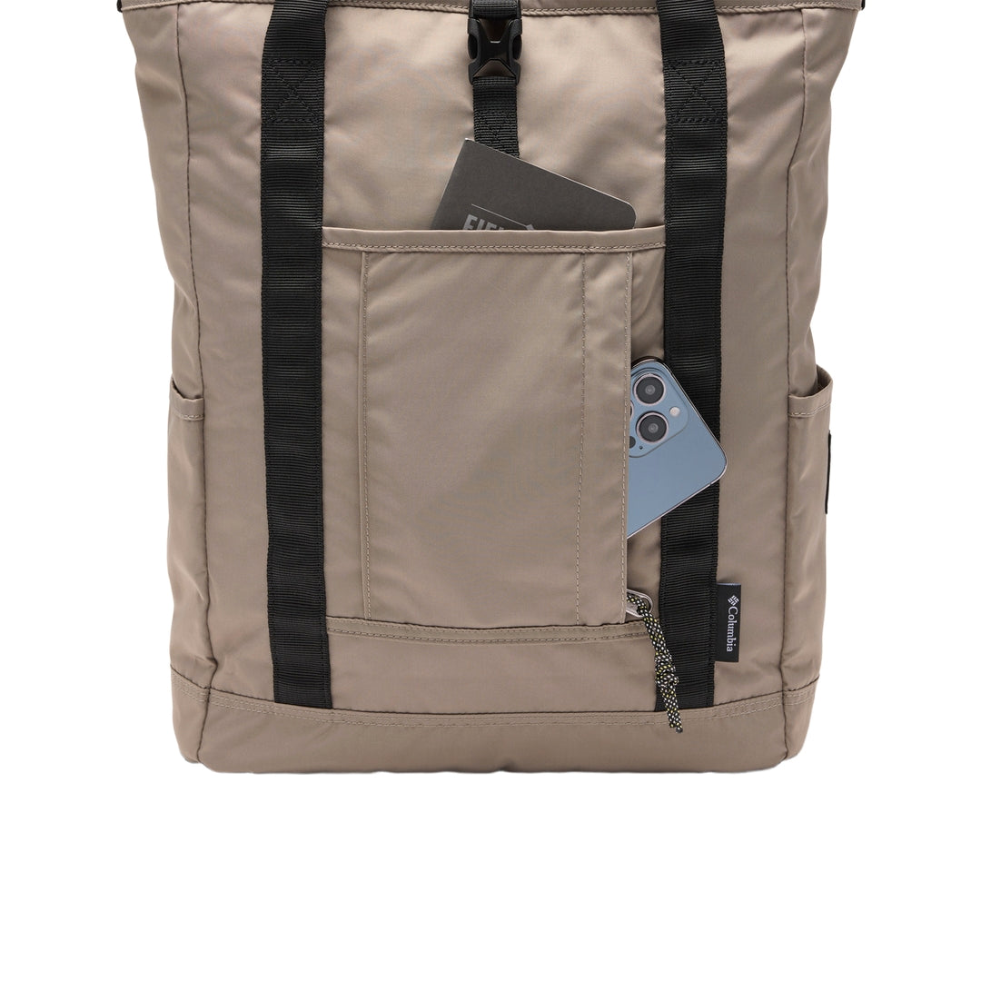 FEATURES: Omni-Shield™ repels moisture and resists stains by preventing liquids from absorbing into fast-drying yarns, so you stay clean and dry in damp, messy conditions Multi-function straps enable backpack, hand, or over the shoulder carrying ability Water-resistant zipper keeps light moisture out Padded laptop compartment Compression straps cinch down to reduce bulk External security pocket for valuables Side access water bottle pockets Fits a 15" / 38.1 cm laptop Capacity: 1,220 cu. in. / 20L Dimensions: 16.5" x 12" x 5" / 42cm x 30cm x 12.5cm Weight: 1.25 lb 20 oz / .57 kg 570 g Uses: Everyday