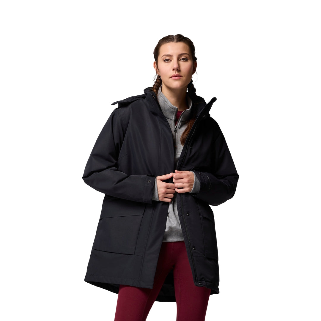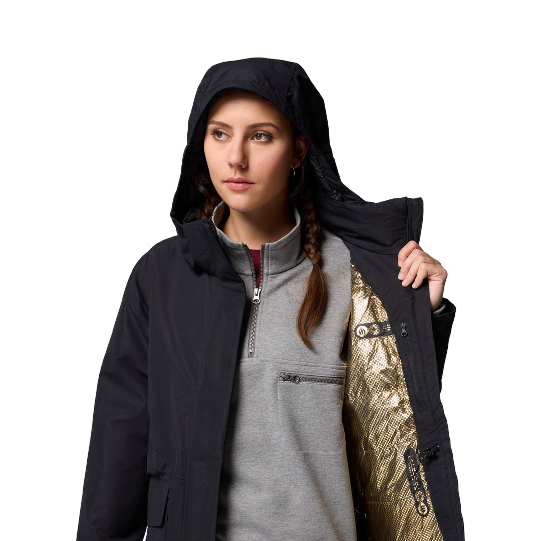 FEATURES: Omni-Tech™ fully seam sealed prevents moisture from seeping into every seam while using waterproof-breathable fabric, so you stay completely dry in the rain Omni-Heat™ thermal-reflective breathable lining retains warmth using silver dots that reflect body heat, so you stay warm and comfortable as temps drop Adjustable hood cinches in back to move with your head as you turn side to side 2-way front zipper closure for extra mobility Drawcord-adjustable waist cinches for a closer-to-body fit Interior security pocket and fleece-lined zippered hand pockets. Adjustable cuffs seal out the elements Droptail hem for extra coverage and protection Center Back Length: 34.0 in / 86.4 cm Uses: Everyday