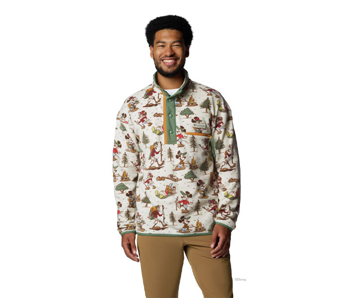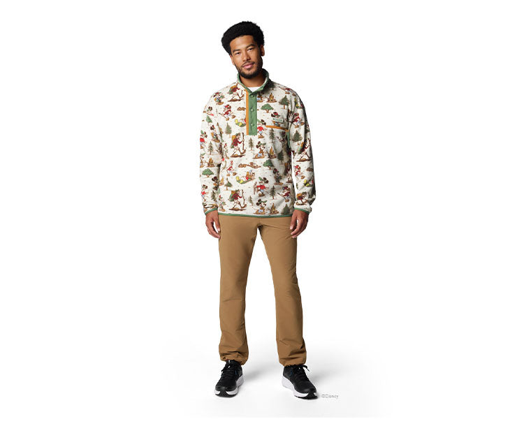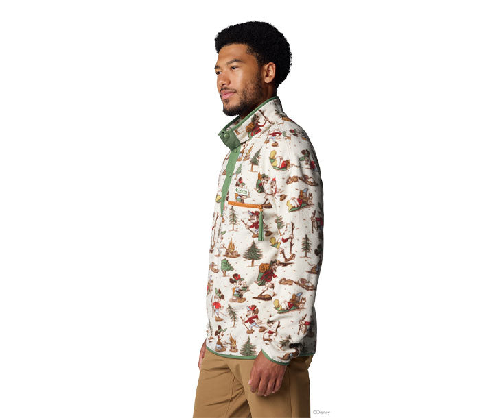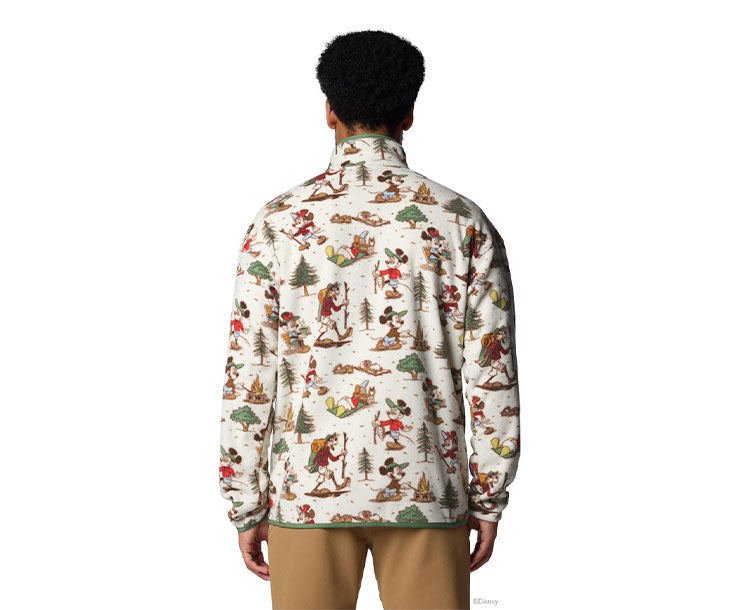 Feel cozy everywhere you go in this fleece pullover. Featuring iconic artwork from cartoonist and Disney legend Floyd Gottfredson, this fleece features Mickey and all his friends on their own outdoor adventure. With a zippered chest pocket, stretch binding on the cuffs, and an adjustable toggle at the hem, you get a cropped look that keeps warmth in.