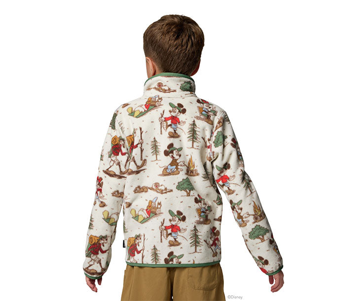 Get coziness for the whole family with this fleece pullover. Featuring iconic artwork from cartoonist and Disney legend Floyd Gottfredson, this fleece features Mickey and all his friends on their own outdoor adventure. With a zippered chest pocket and stretch binding on the cuffs and hem, cold air stays out and warmth stays in.