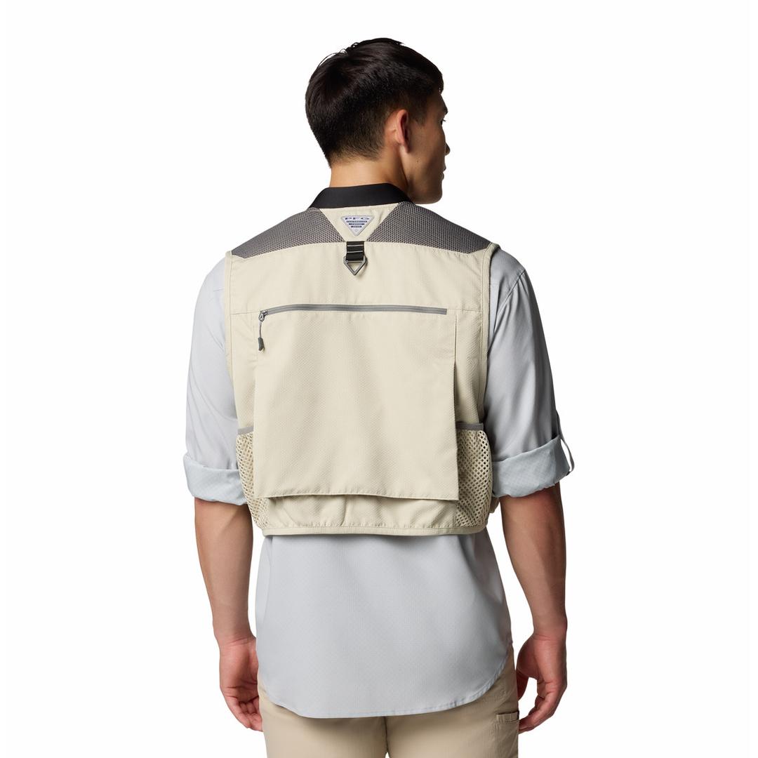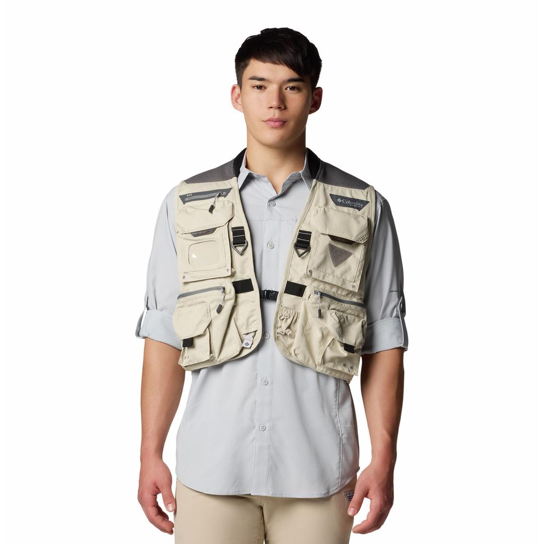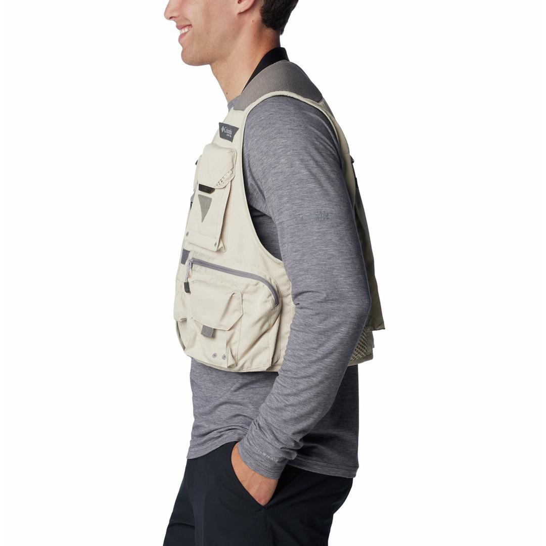 FEATURES: Omni-Shield™ repels moisture and resists stains by preventing liquids from absorbing into fast-drying yarns, so you stay clean and dry in damp, messy conditions Crafted of lightweight fabric with our Comfort System on the yoke to evenly distribute weight 12 pockets front and back including a license window, net pocket, beverage-friendly pocket, roomy zippered pockets, and more Utility loops and D-rings on front and back to attach gear Fly patch for quick access to most-used flies Front buckle helps keep vest closed Center Back Length: 19.8 in / 50.2 cm Uses: Fishing Imported