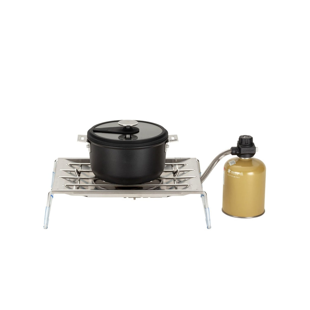 - Snow Peak's new flat-plate single-burner stove is a gas stove designed for ultimate ease of use. The lowered burner head design significantly improves wind resistance. The stove's top surface is nearly flat, allowing it to fit flat on an IGT tabletop, effectively utilizing the surface. Furthermore, gas cylinders can be used by connecting it to an IGT rail.