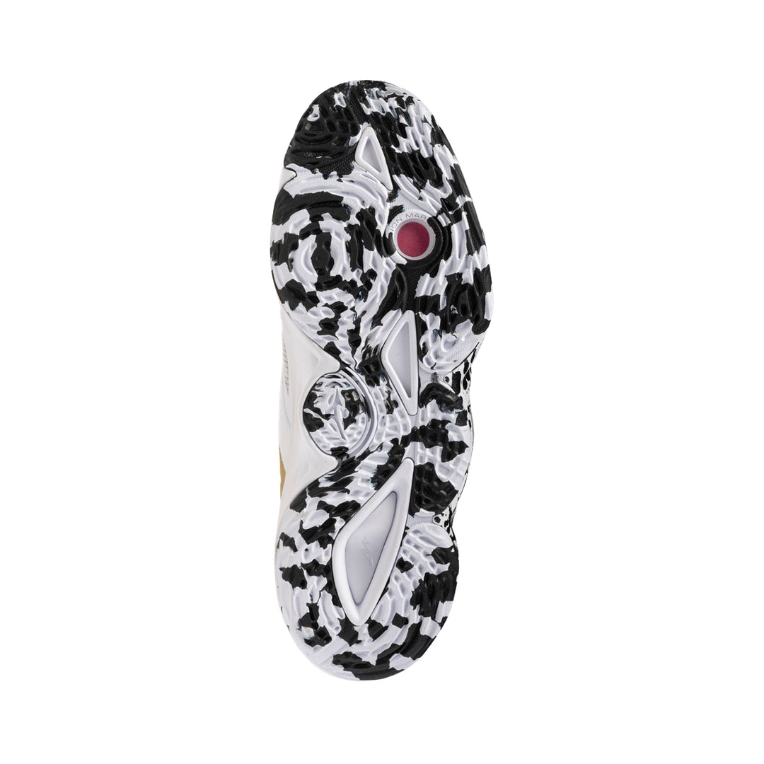 The Wave Momentum Elite Mid elevates comfort, support, and performance in a mid-cut silhouette tailored for middle blockers, outside hitters, and any indoor athlete wanting enhanced ankle stability. Cushion & Responsiveness: Full?length Mizuno ENERZY midsole, plus ENERZY CORE forefoot insert, delivers plush cushioning with energetic rebound. U4icX and PoWnCe compound add featherlight comfort and bounce. Stability & Protection: Integrated Wave plate in heel/midfoot ensures reliable impact dispersion and lateral support. Outrigger structure around the pinky?toe side adds roll?resistance. Dura Shield TPU toe cap guards against abrasion during dives. Fit & Construction: No?sew, 3?layer DynamotionFit upper wraps the foot securely, while the internal bootie design and padded mid?cut collar embrace the ankle. AIRmesh/textile base provides breathability. Traction & Ventilation: XG rubber outsole gives durable, non?marking grip. Intercool ventilation channels help reduce heat buildup. The Wave Momentum Elite Mid merges high?end cushioning, protective mid?top design, and superior stability—making it a top choice for players who jump, block, and land aggressively.
