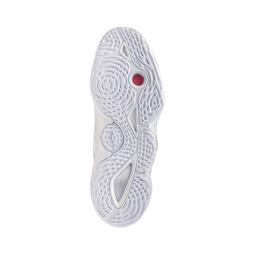 The Wave Momentum Elite Mid elevates comfort, support, and performance in a mid-cut silhouette tailored for middle blockers, outside hitters, and any indoor athlete wanting enhanced ankle stability. Cushion & Responsiveness: Full?length Mizuno ENERZY midsole, plus ENERZY CORE forefoot insert, delivers plush cushioning with energetic rebound. U4icX and PoWnCe compound add featherlight comfort and bounce. Stability & Protection: Integrated Wave plate in heel/midfoot ensures reliable impact dispersion and lateral support. Outrigger structure around the pinky?toe side adds roll?resistance. Dura Shield TPU toe cap guards against abrasion during dives. Fit & Construction: No?sew, 3?layer DynamotionFit upper wraps the foot securely, while the internal bootie design and padded mid?cut collar embrace the ankle. AIRmesh/textile base provides breathability. Traction & Ventilation: XG rubber outsole gives durable, non?marking grip. Intercool ventilation channels help reduce heat buildup. The Wave Momentum Elite Mid merges high?end cushioning, protective mid?top design, and superior stability—making it a top choice for players who jump, block, and land aggressively.