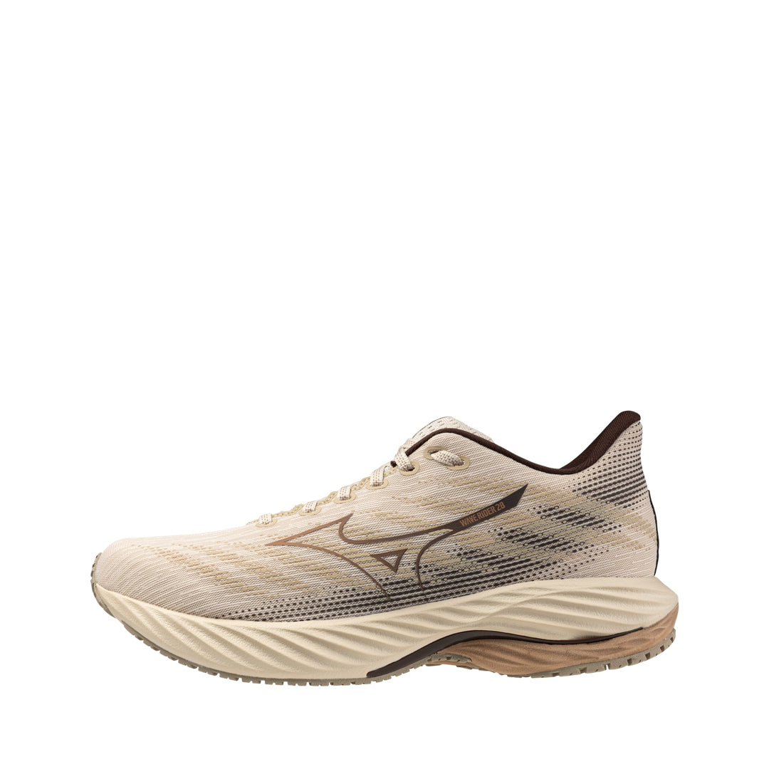 The Mizuno Wave Rider 28 is a neutral daily trainer featuring a dual-layer midsole with Mizuno Enerzy and Enerzy NXT foam, complemented by a Wave Plate and a breathable Jacquard Air Mesh upper—offering cushioned comfort, stable transitions, and eco-conscious materials.