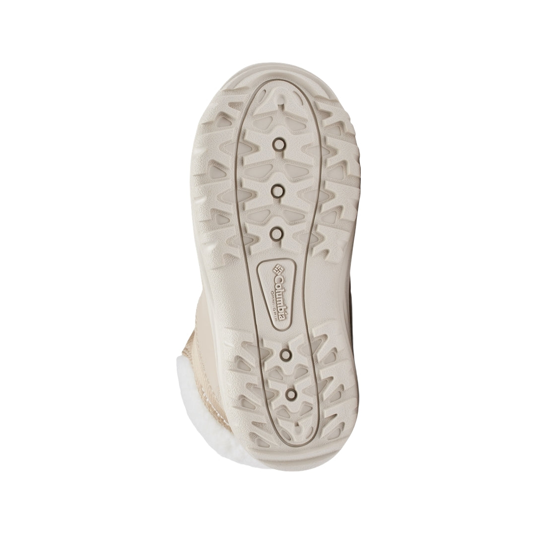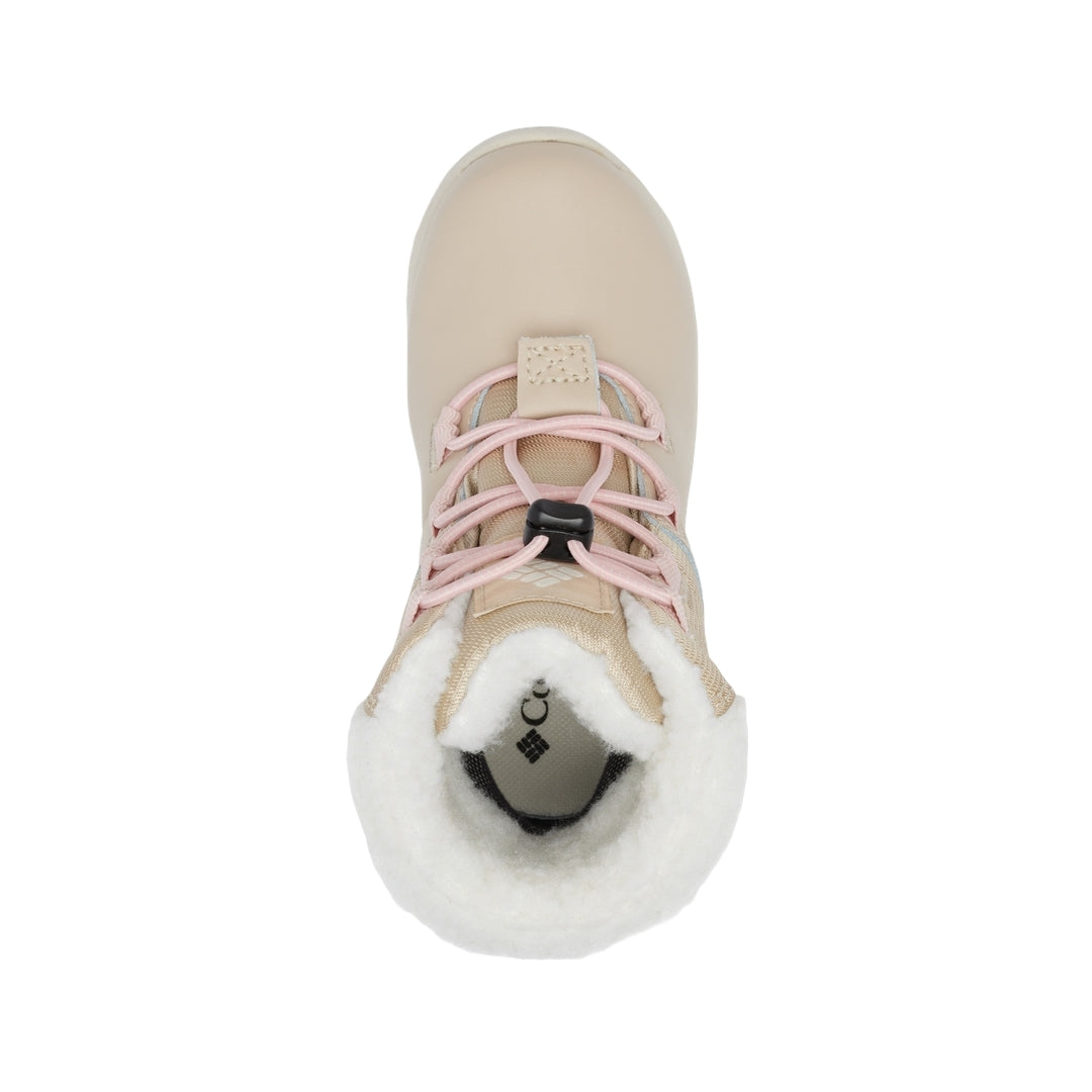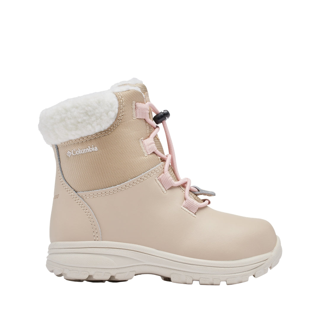FEATURES: Leather and textile upper with Sherpa fleece collar Omni-Tech™ sheds water and releases excess heat with multi-layered breathable materials, so your feet stay dry and comfortable in the rain Omni-Heat™ thermal-reflective breathable lining retains warmth using silver dots that reflect body heat, so your feet stay warm and comfortable as temps drop Lightweight yet warm 200g insulation for cold conditions Molded rubber cupsole construction for durability Bungee lacing for a secure fit and adjustability Omni-Grip™ outsole provides all-terrain stability and traction with non-marking rubber and a tread pattern that adapts to varied surfaces, so you stay sure-footed in wet or dry conditions Weight: 8.9 oz / 250 g (Per shoe, Big Kids' size 1Y) Uses: Ski / Snowsports