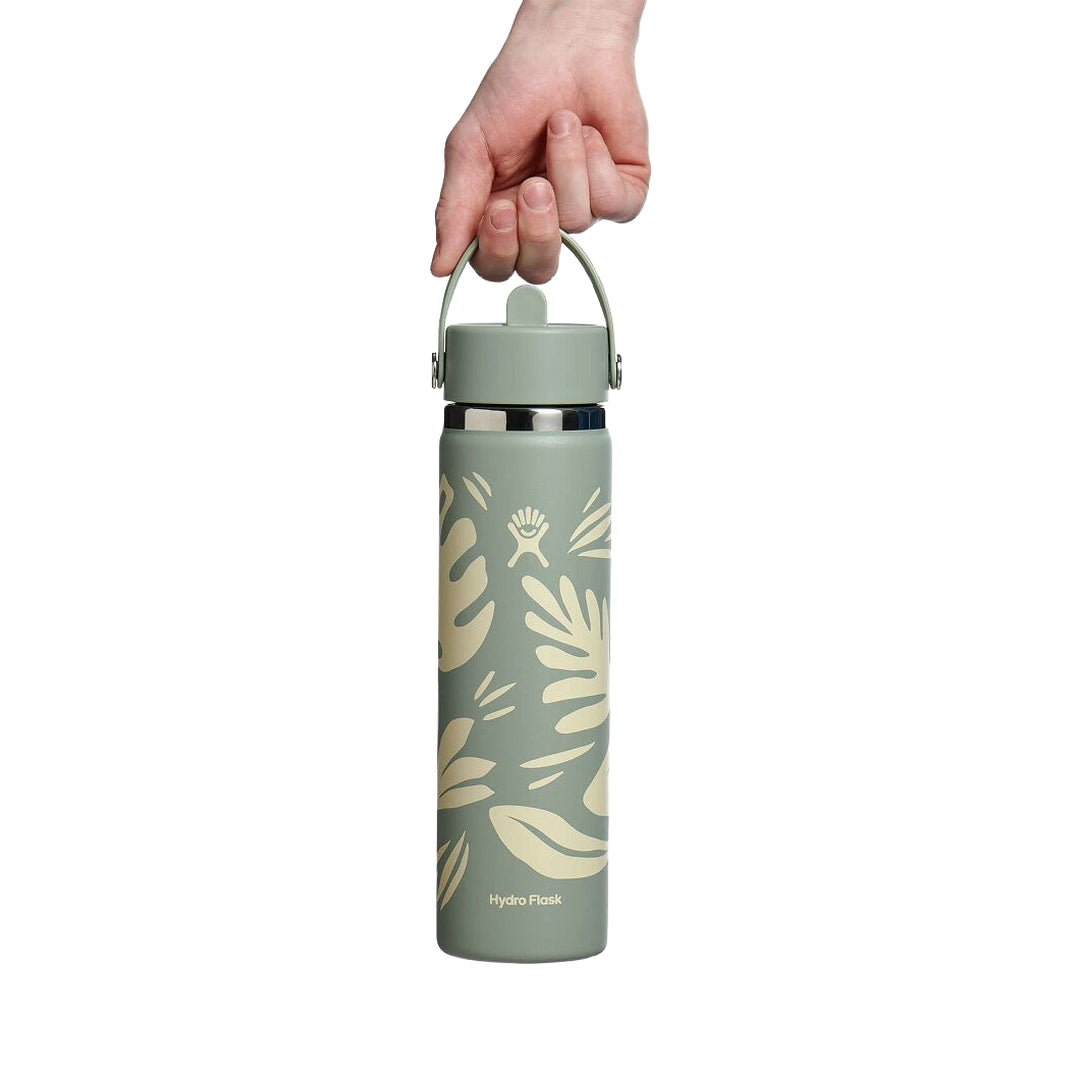 Flip it and sip it. Flip it and sip it with the Hydro Flask 24 oz Wide Mouth Bottle With Flex Straw Cap. With a comfortable, flexible handle, the closeable, leakproof straw cap is easy to open and close with one hand, for on-demand hydration. Double-wall insulation keeps drinks cold up to 24 hours for cool refreshment. The slim design fits most cupholders, easily fits ice cubes and is dishwasher safe.