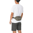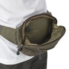 A no-frills hip sack fitted with a zippered outer pocket and an inner organizer.
