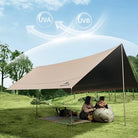Made with 150D Oxford cloth using Blackout Shelter Technology, it offers exceptional waterproof and UV-blocking performance, ensuring comfort and safety during outdoor adventures. Ideal for camping, picnics, car trips, and backyard gatherings, this tarp creates a large shaded area that accommodates groups of up to 12 people.