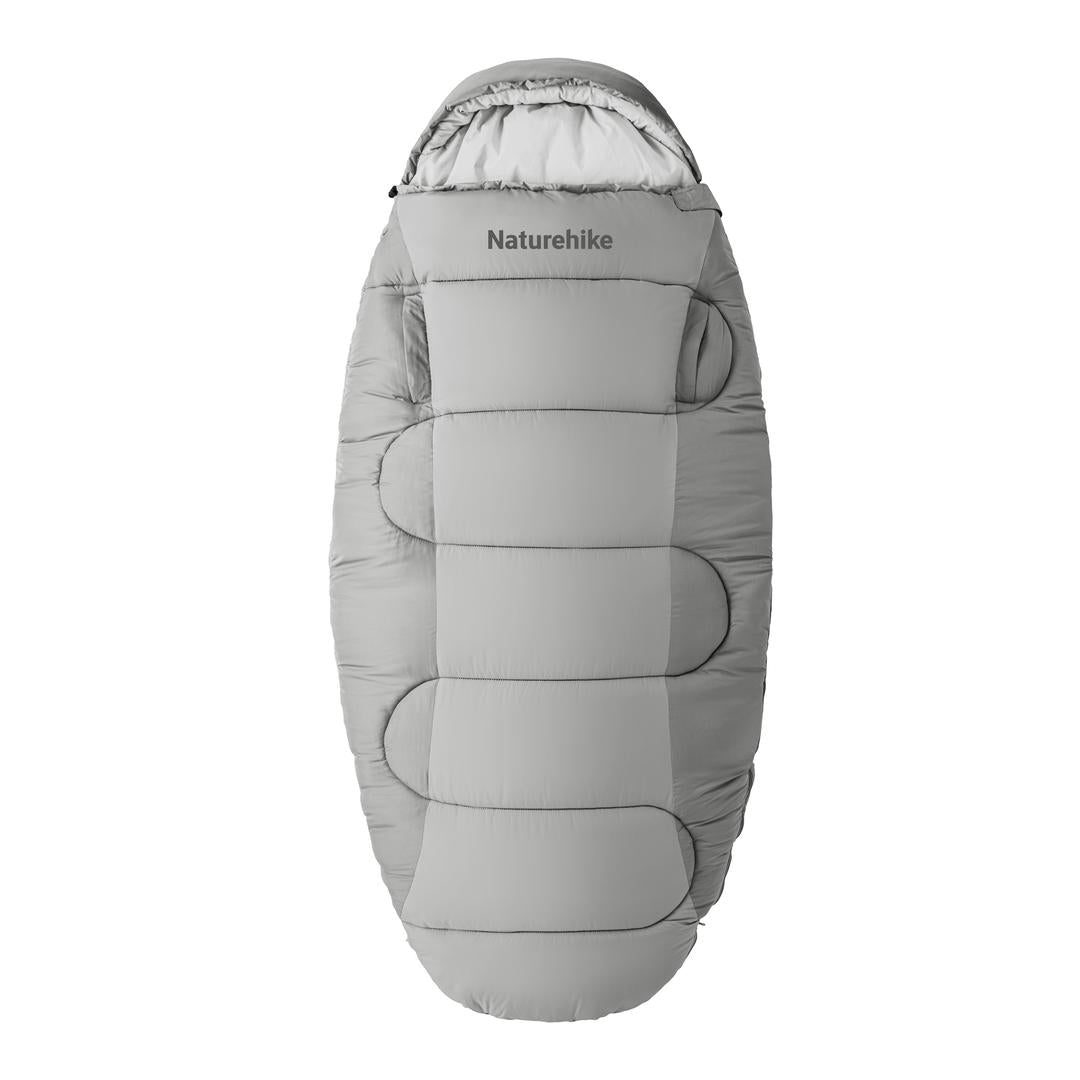 Naturehike Cotton Glamping Sleeping Bag NH20MSD03/CNK2350WS026. The oval design provides ample space in the middle of the sleeping bag for greater comfort, while maintaining a snug and secure fit around the mouth and foot. This ensures maximum warmth and comfort.