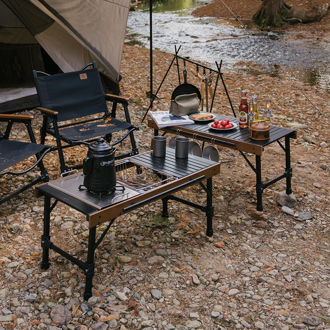 The Naturehike NH21JU011, also known as the FangZhe Outdoor IGT Folding Table, is a versatile, modular camping table designed for the Iron Grill Table (IGT) system. It combines aluminum alloy and beech wood for a blend of modern functionality and a classic "glamping" aesthetic.