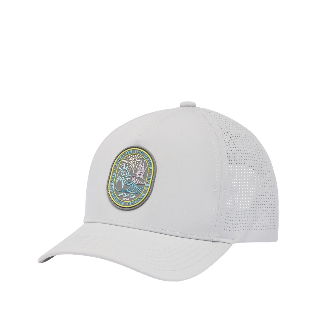 FEATURES: Our premium headwear system combines the comfort of a secure, fitted hat and the customizability of an adjustable snap back Snap-adjustable closure at the back for a just-right fit Laser-cut venting for increased breathability Moisture-wicking, stretch sweatband for fresh comfort Mid-height crown Uses: Fishing