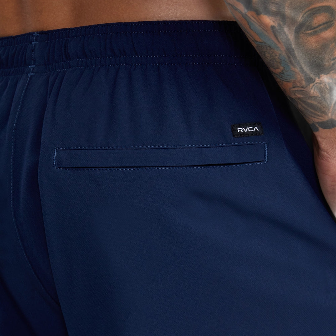 Combining heritage design and performance-enhancing comfort, the RVCA Yogger Stretch Elastic Athletic Shorts 17" have you covered. These men's athletic shorts are made from stretch polyester and feature an elastic drawcord waist, slightly scalloped hem with split side vent and pockets throughout. Topped with RVCA VA branding.