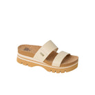 ● or synthetic woven raffia Our most comfortable footbed featuring the perfect blend of cushion and rebound support. This is a wider shape with generous arch support and heel cupping. Genuine cork topsheet • Lightweight and durable chunky lug EVA outsole with a 2.5ˮ platform silhouette with exaggerated notch detail