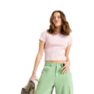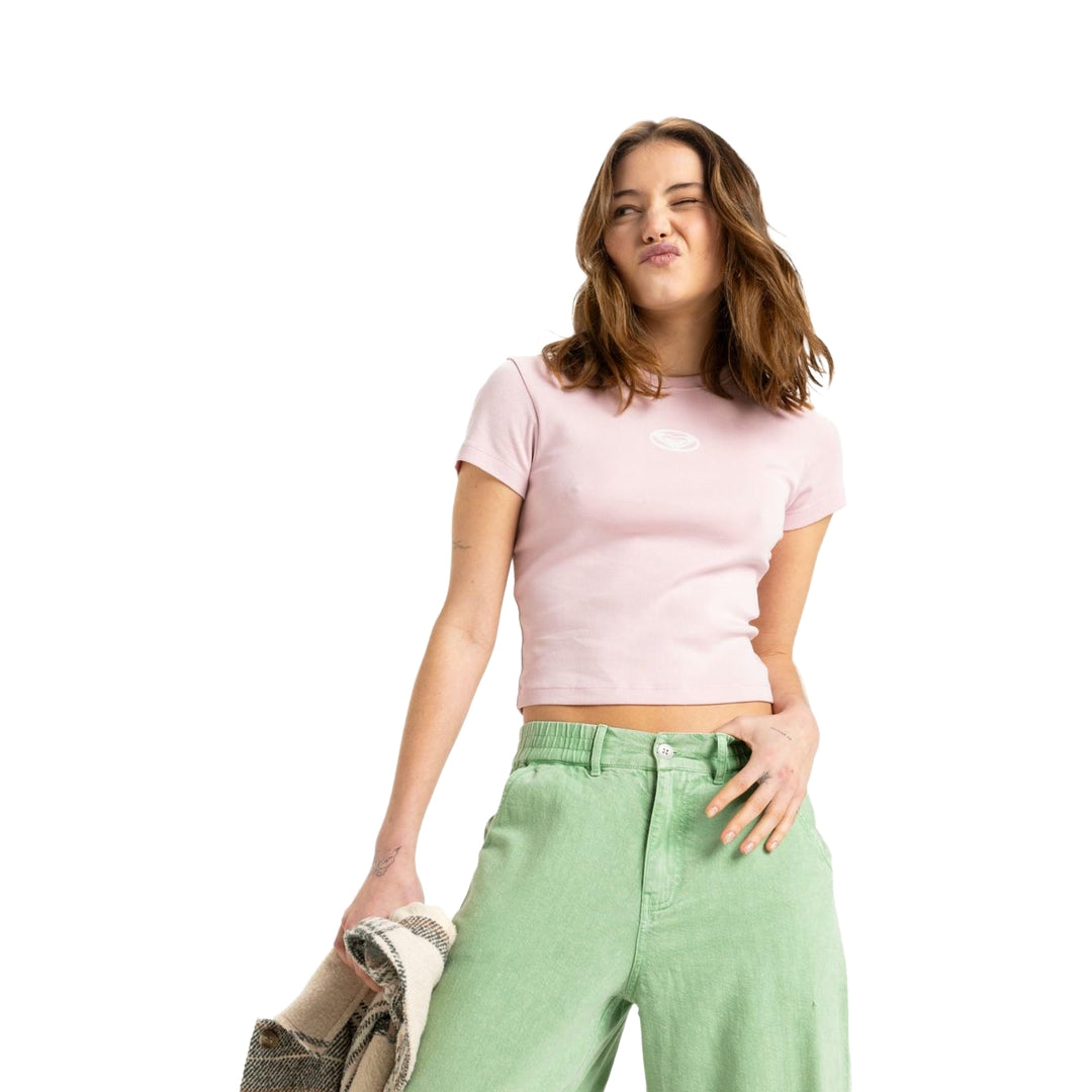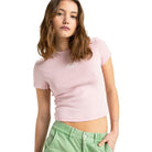 -Features: Type: Crop short sleeve tee Fabric: Flat rib 100% Cotton Fit: Regular crop fit Neck: Crew neck Front screen print.