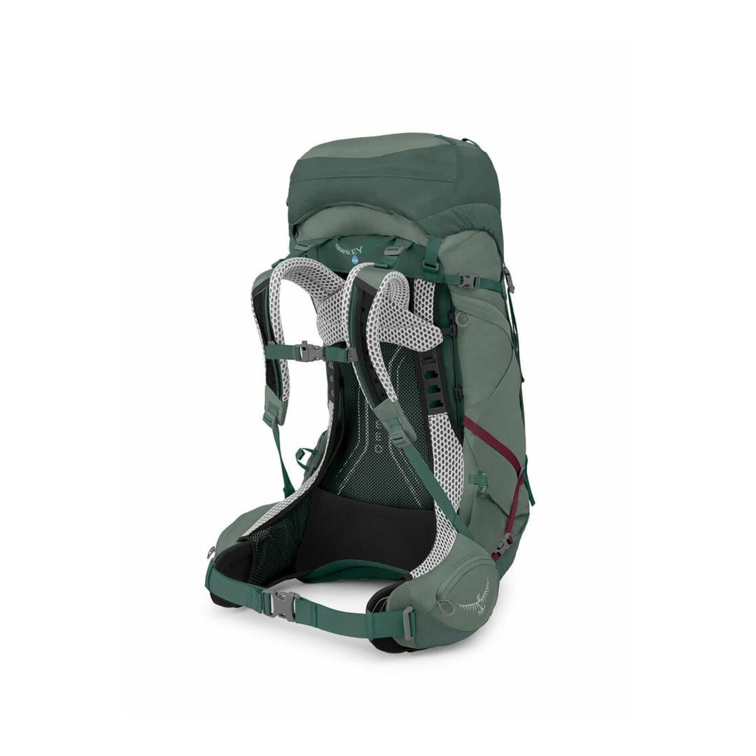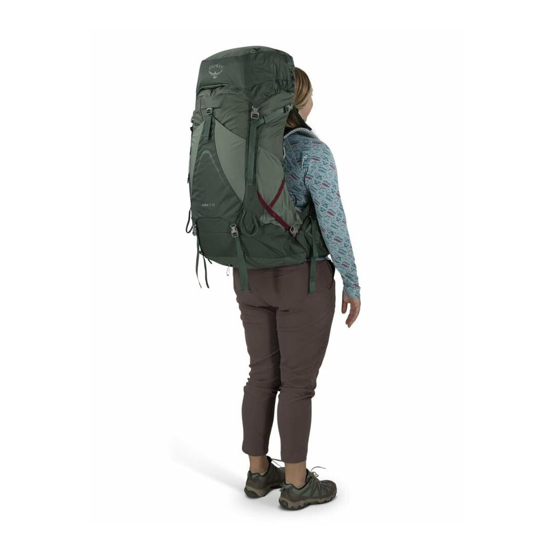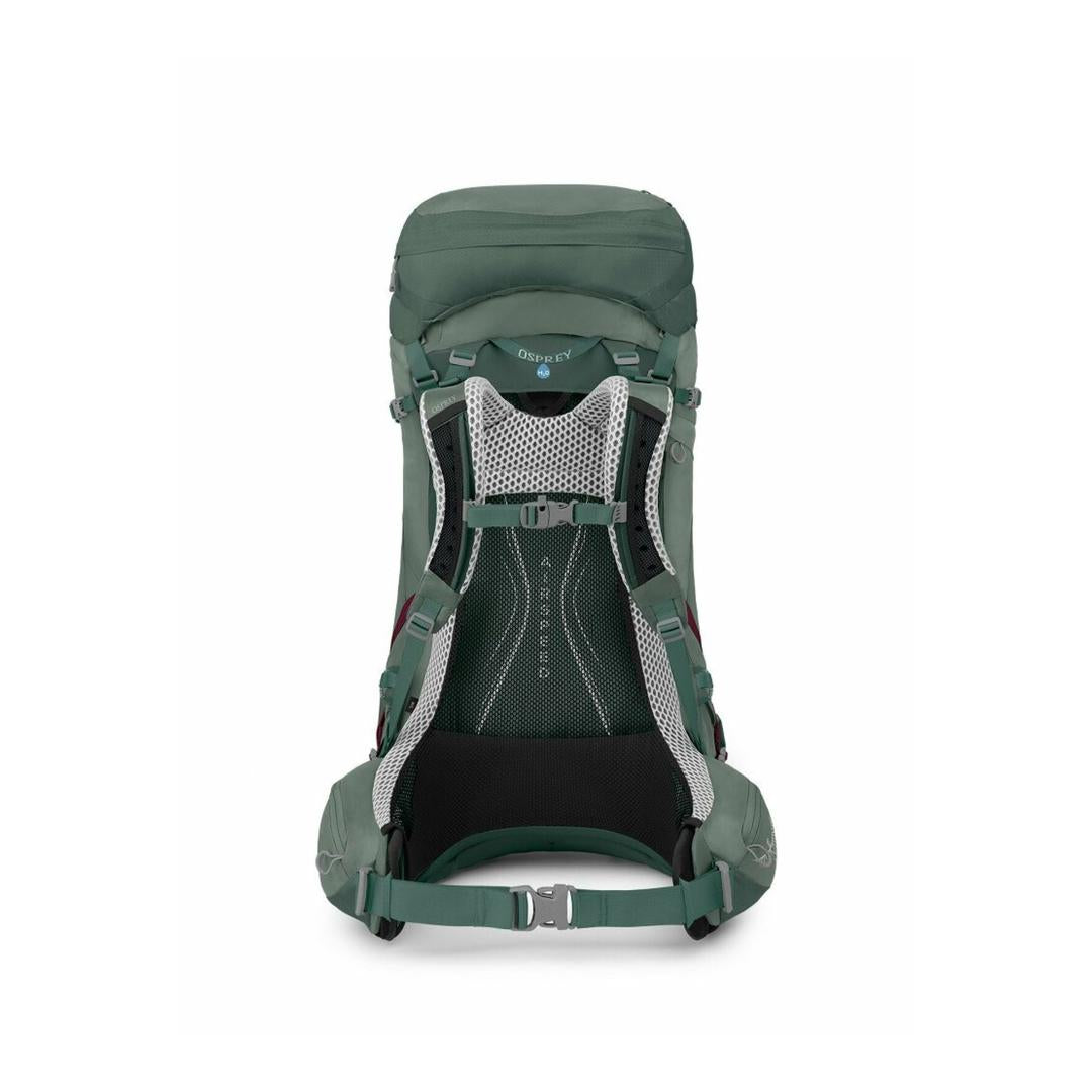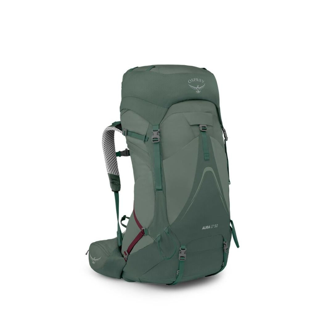 Osprey Aura AG LT 50 Women's Backpack, a lightweight, ventilated hiking pack designed for comfort with its Anti-Gravity (AG) suspension, featuring a minimalist style and sustainable materials like bluesign-approved fabrics, often seen in colors like Koseret Green/Darjeeling Spring. It's a popular model known for combining tradition with modern tech for optimal quality and environmental consideration, available in sizes like XS/S for personalized fit.