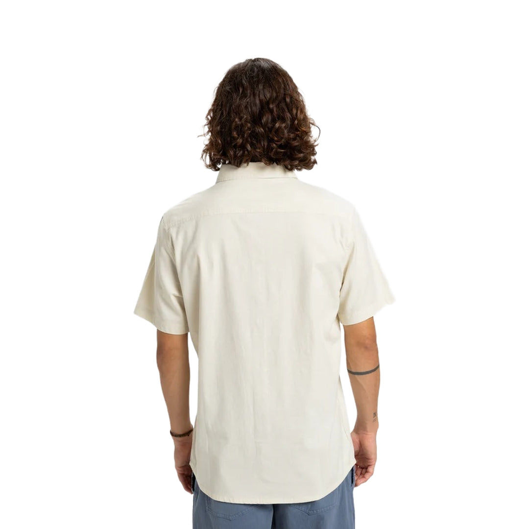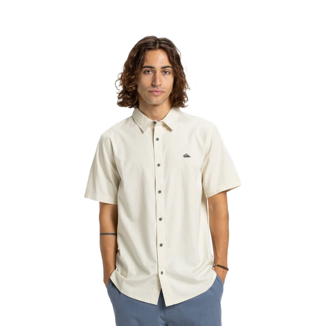 -Regular button closure Chest embroidery Quiksilver recycled woven label pack