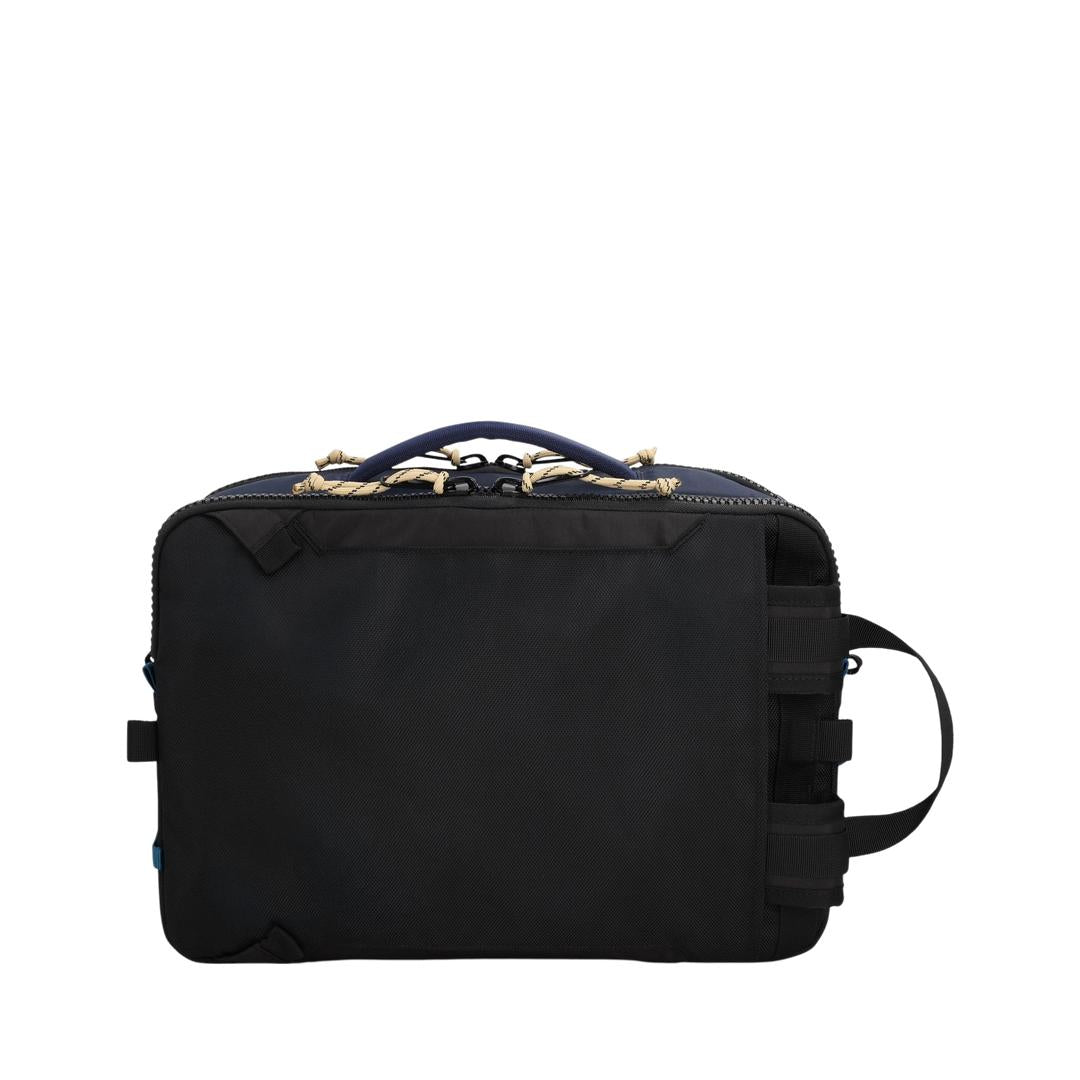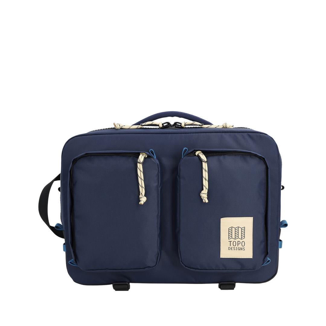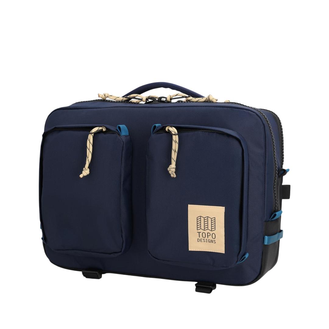 With dimensional exterior pockets and our signature styling, the Global Briefcase is a bold addition to any bag collection. Mountain<br>-ready recycled materials meet travel<br>-friendly features, creating an everyday carry that’s up for anything. Equipped for commuting to the office or breezing through the concourse. The Global Briefcase boasts a large main compartment with added internal organization and an external padded laptop sleeve. Choose from the 3 carrying options, or use the pass<br>-through sleeve to secure the bag to your rolling luggage handle. Two large dimensional pockets on the front are perfect for keeping your essentials accessible no matter where you’re headed.<br> COLOR: NAVY/SAHARA