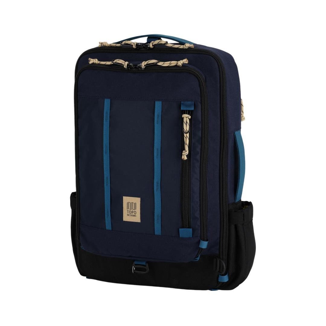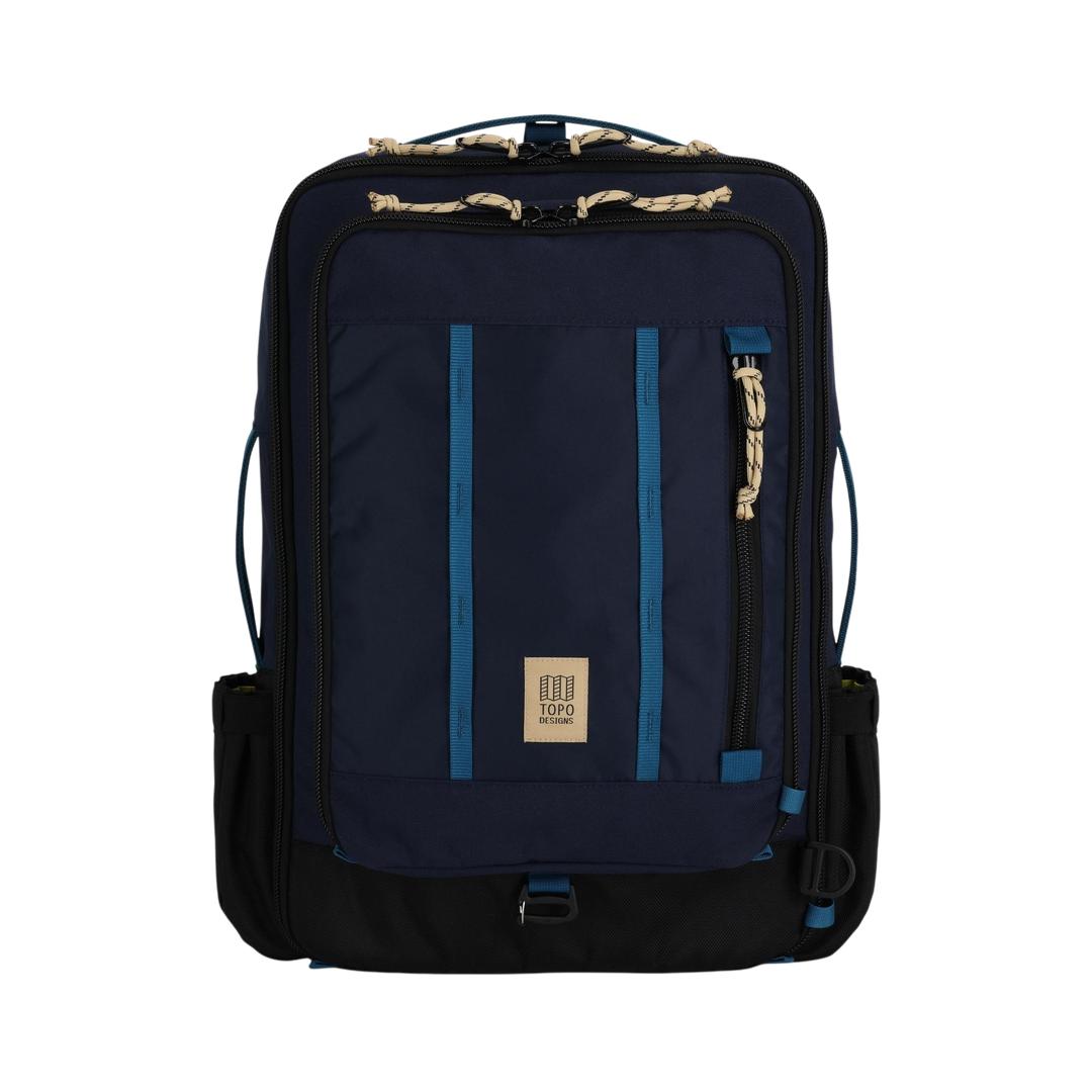 Your ideal one bag travel companion. Our carry on compliant Global Travel Bag 30L (made with recycled materials) offers 3 way carry options, plenty of internal organization, expandable side water bottle pockets, and an external laptop sleeve for easy access. The size is perfect for a long weekend getaway.<br> COLOR: NAVY/SAHARA