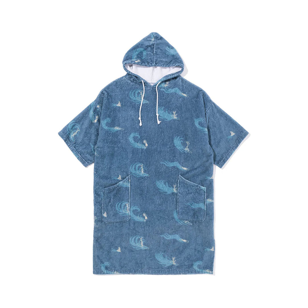 Introducing a poncho that is useful for changing clothes while surfing or camping. It has a long hem, so it is easy and safe to change bottoms.