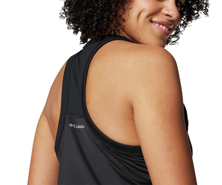 FEATURES: Omni-Shade Broad Spectrum UPF 50 protects against skin damage using select fibers and fabrics to block a wider range of UVA/UVB rays, so you stay safer in the sun Omni-Wick keeps you dry and cool by pulling moisture to the fabric’s surface to evaporate, delivering fast-drying, next-to skin comfort in the heat Internal bra for light support Ribbed binding and upper back for a finished look Uses: Hiking, Everyday Outdoor Imported