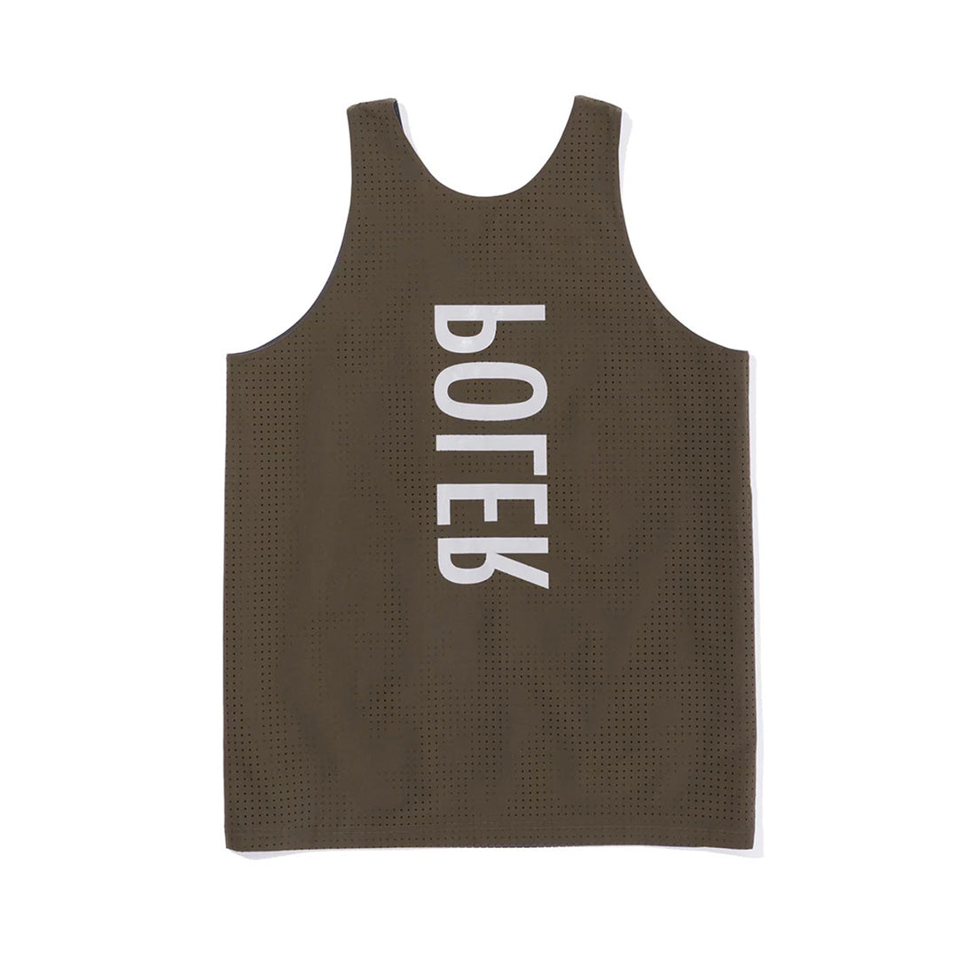 Introducing a reversible tank top made of mesh material.