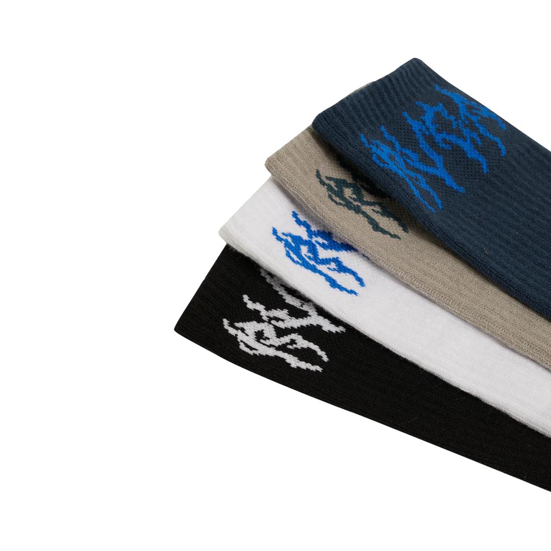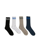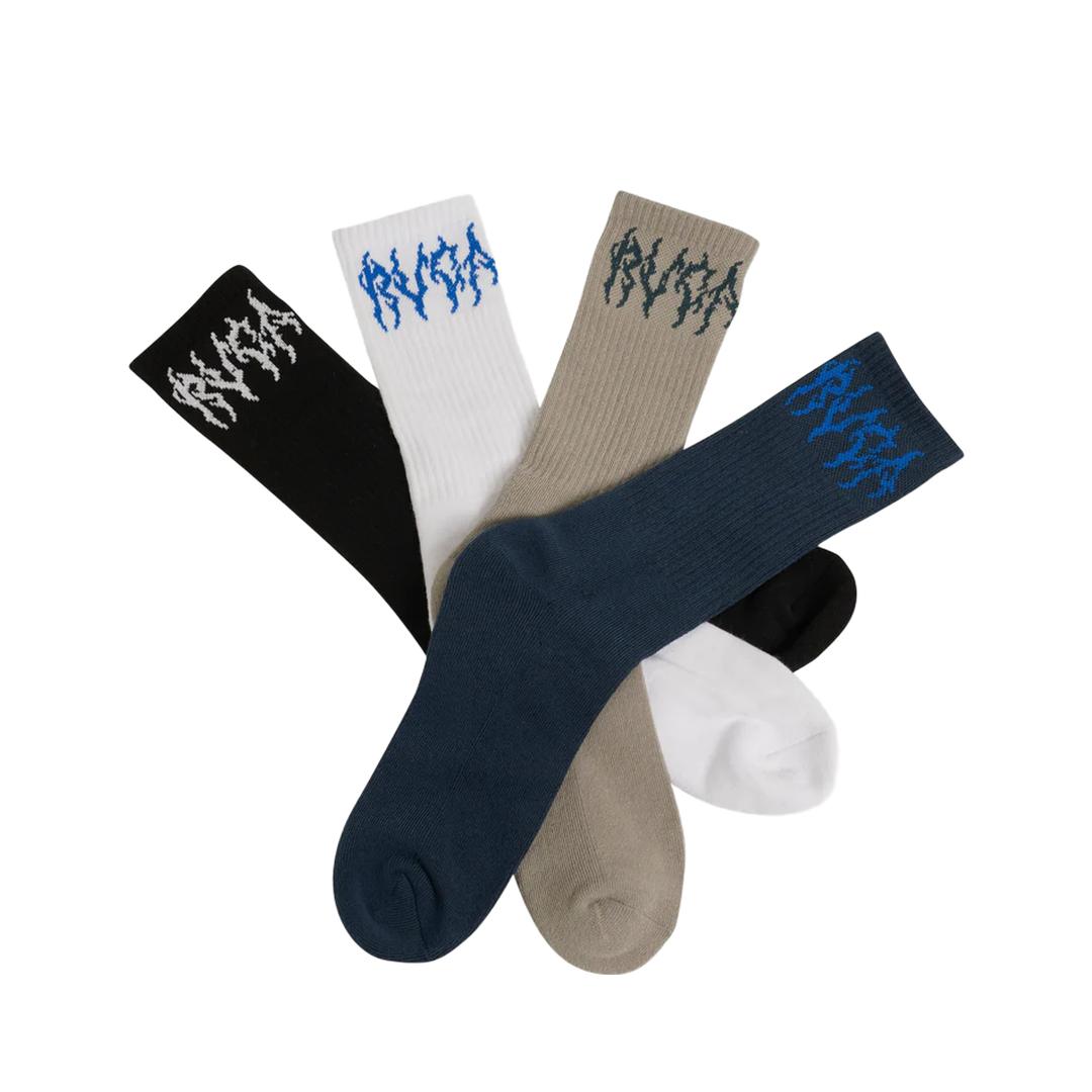 Contains 4 pairs in dirrent color and has a RVCA logo printed.