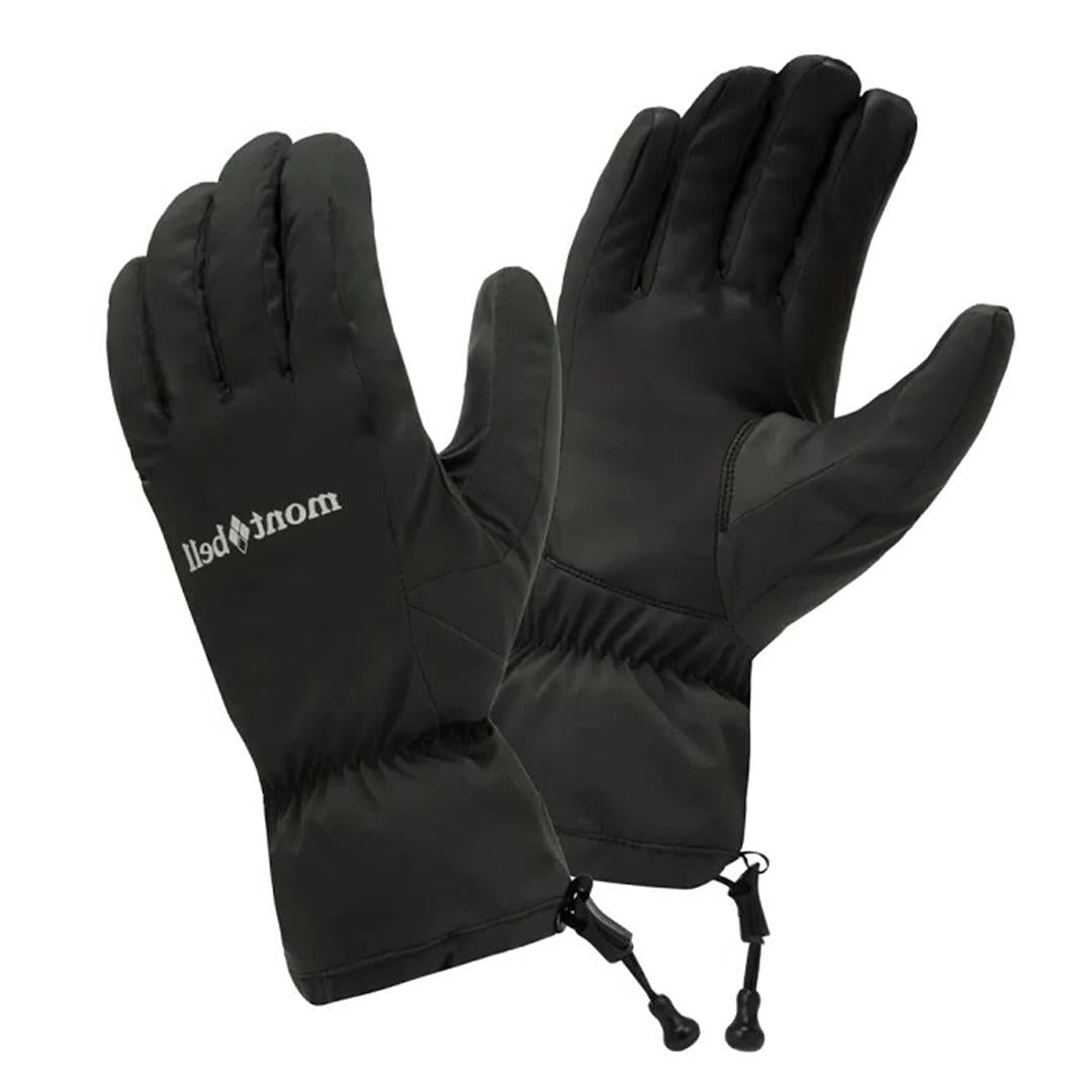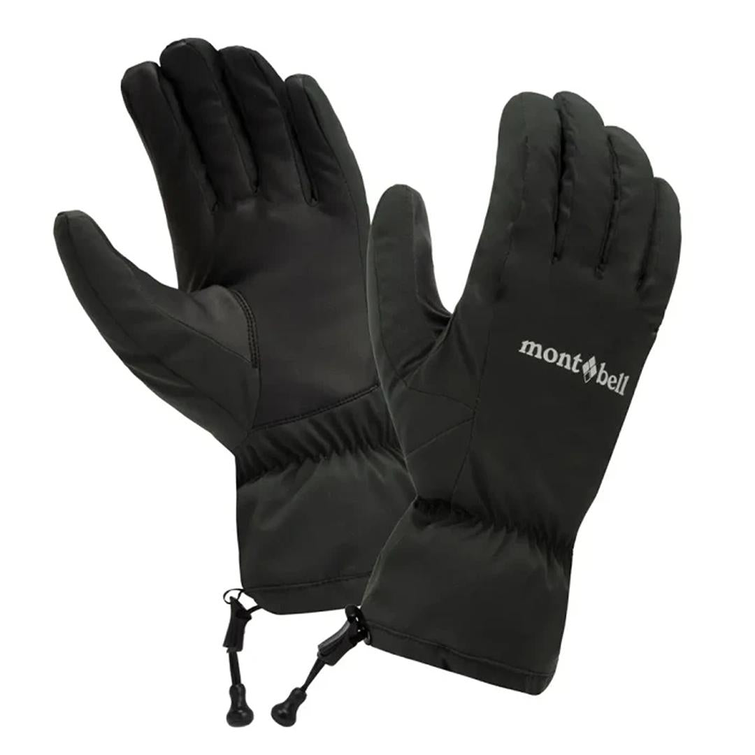 - Buckle for connecting gloves together Utilizes Montbell's proprietary DRYTEC fabric to deliver excellent water-resistance and windproofing properties, while heat-retaining and quick-drying Exceloft insulation and a brushed lining promote comfortable warmth, making these gloves perfect for winter hiking. The palm is made of supple synthetic leather to offer an excellent grip.
